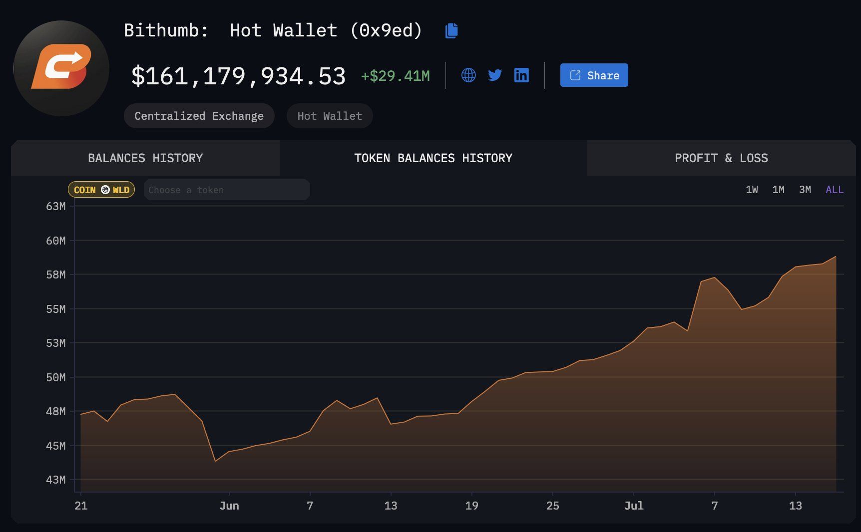 Ifølge DefiSquared holder koreanske private investorer næsten 25% af alle cirkulerende WLD på Bithumb.