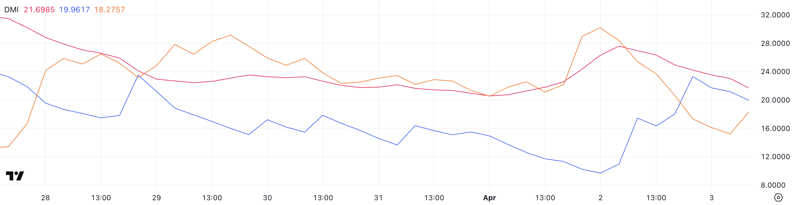 Wormholes DMI-diagram viser, at dets ADX (Average Directional Index) er faldet til 21,69 fra 27,59 blot en dag tidligere, hvilket signalerer, at den nylige trend kan miste styrke.