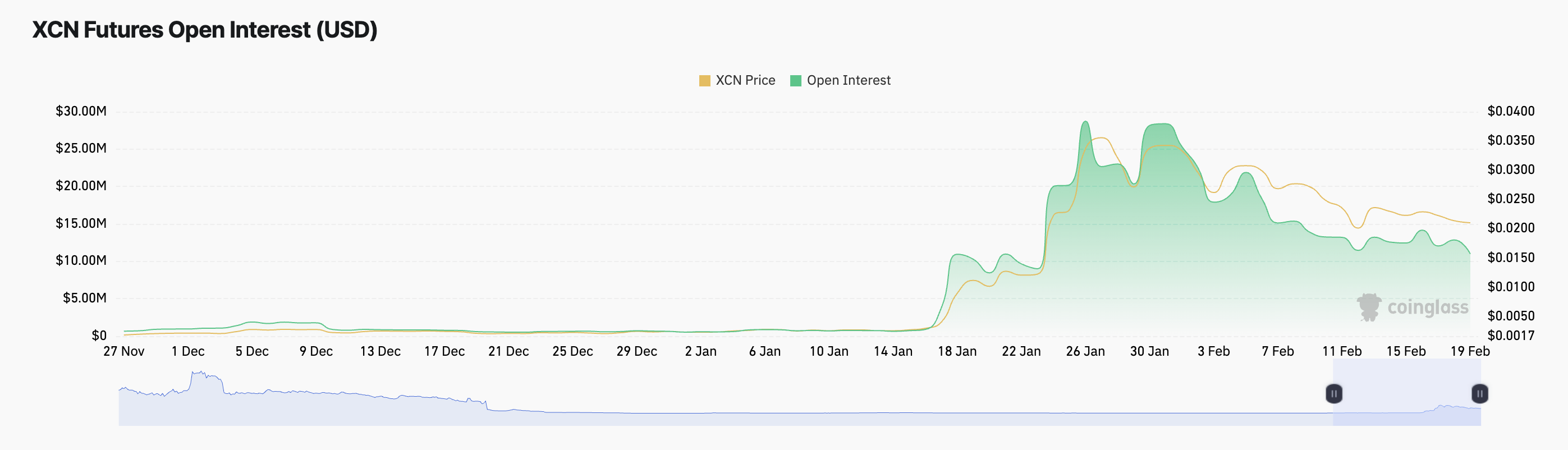 Onyxcoin (XCN) har været i en nedadgående spiral den seneste måned og har mistet 42% af sin værdi. Dette kraftige fald har skubbet den ind i en undervurderet tilstand, ofte set som et købssignal for handlende, der ønsker at udnytte nedsatte kurser.