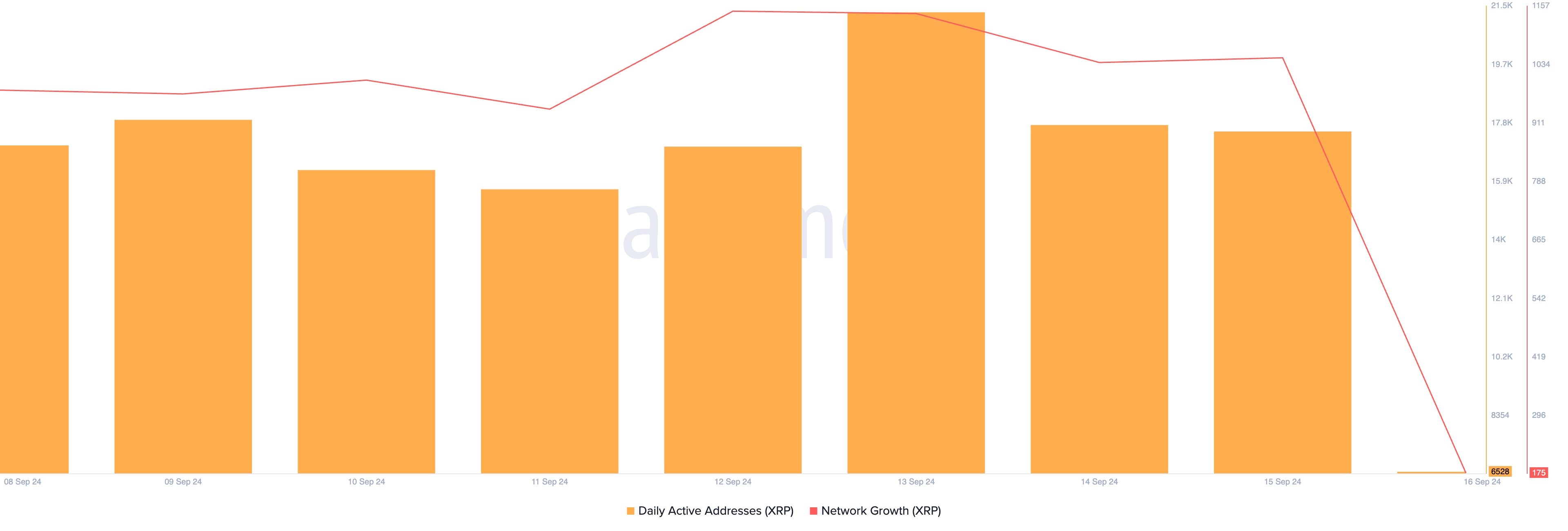 Efterspørgslen efter XRP toppede den 13. september, men er siden faldet. Ifølge Santiment er daglige aktive og nye adresser for tokenet faldet.