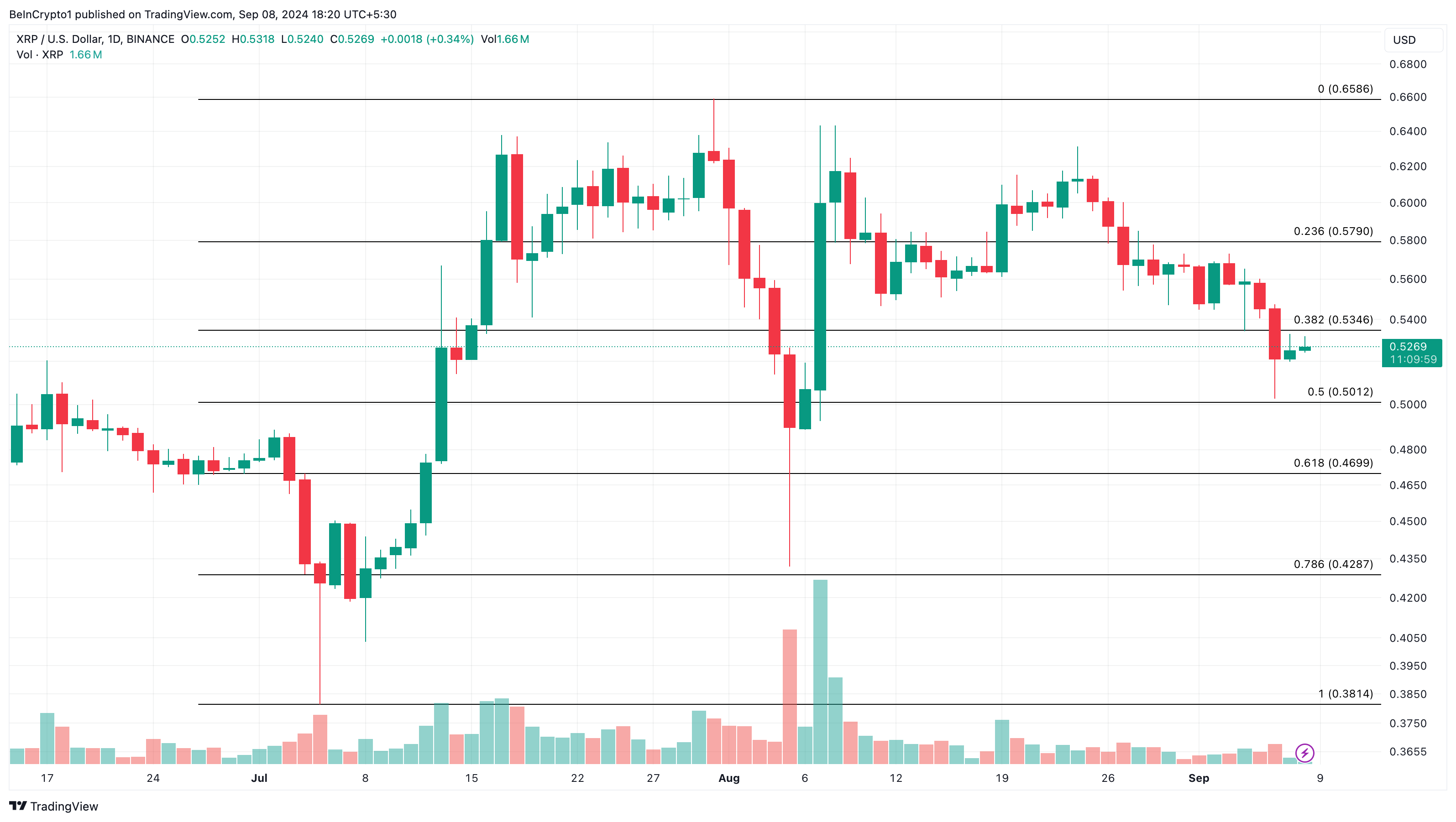 Imens har altcoinen undgået at falde til $0.50 igen. Hvis det var sket, kunne XRP’s kurs være kollapset til $0.46.