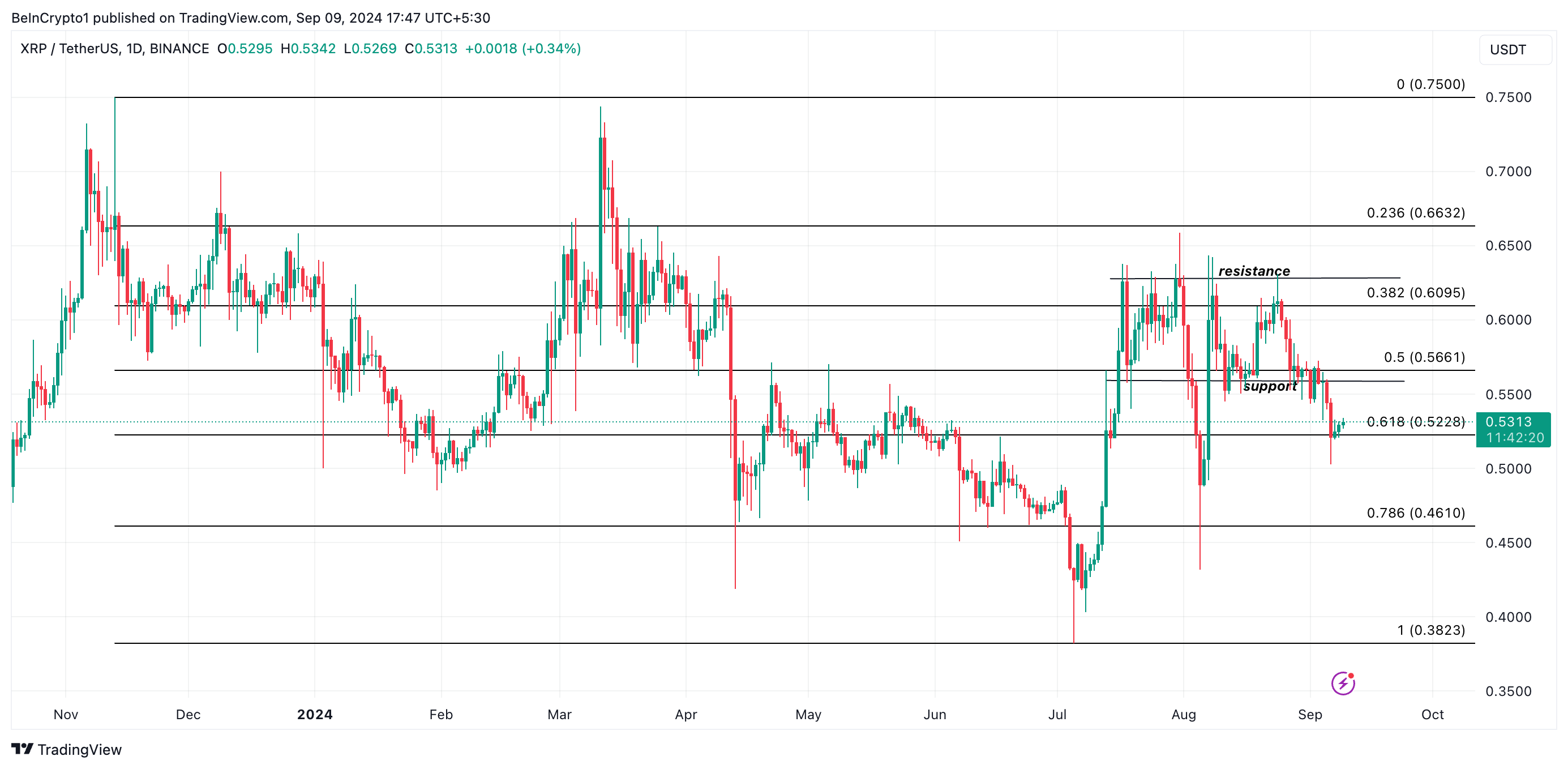 XRP’s kurs faldt under kanalens nedre støttelinje den 5. september, men har siden begyndt at rally. Dette indikerer en genprøvning af den tidligere støtte, som kun vil være vellykket, hvis efterspørgslen efter XRP forbliver stærk.